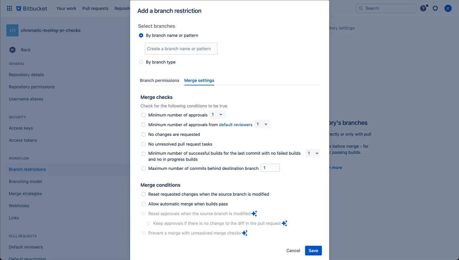 - Click on the Add a branch restriction button
